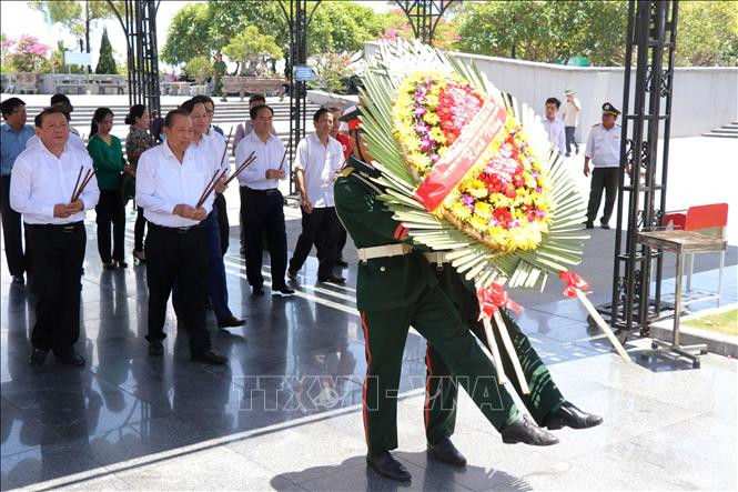 Phó Thủ tướng Thường trực Chính phủ Trương Hòa Bình dâng hương, dâng hoa tại Nghĩa trang Liệt sỹ Quốc gia Đường 9. Ảnh: Nguyên Lý-TTXVN