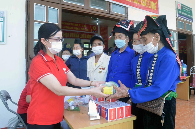 Cấp thuốc miễn phí cho người cao tuổi tại xã Phổng Lăng, huyện Thuận Châu, tỉnh Sơn La. Ảnh: Quang Quyết-TTXVN