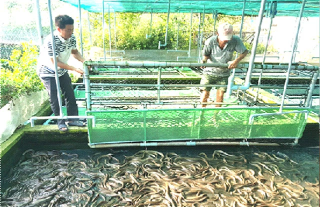 Mô hình nuôi lươn không bùn trong bể xi măng ở xã Vĩnh Kim, huyện Cầu Ngang. Ảnh: thuysanvietnam.com.vn