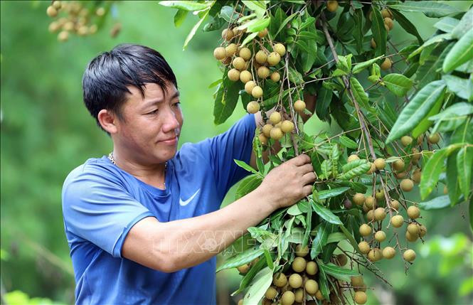 Thu hoạch nhãn tại bản Nà Pàn, xã Nà Nghịu, huyện Sông Mã, tỉnh Sơn La. Ảnh: Quang Quyết-TTXVN