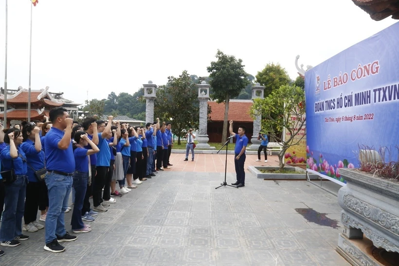 Đoàn Thanh niên TTXVN chụp ảnh lưu niệm tại Lễ báo công. Ảnh: TTXVN