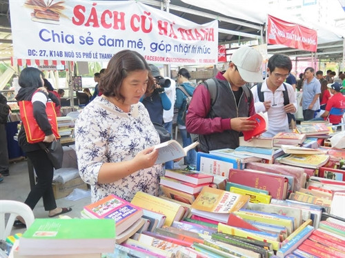 | Độc giả tham quan, lựa chọn sách trong các gian hàng trưng bày tại Ngày hội sách cũ, ngày 05/3/2017 |