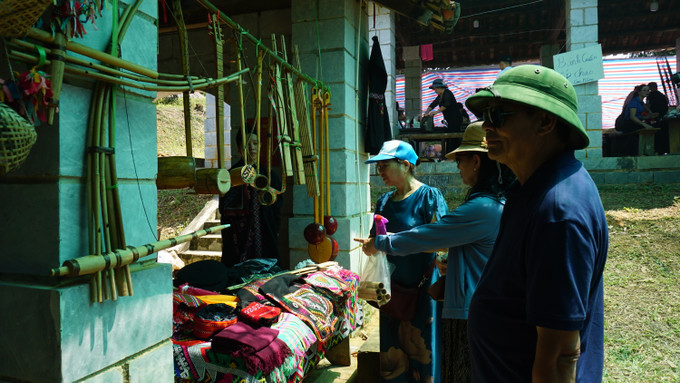 Các loại nhạc cụ, đồ lưu niệm mang đậm nét vùng cao được du khách quan tâm. Ảnh: Hương Hiền