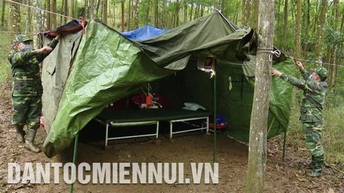 | Đồn Biên phòng cửa khẩu quốc tế Hữu Nghị, Bộ đội Biên phòng Lạng Sơn dựng lán chốt chặn các đường mòn đường tắt trên biên giới. Ảnh: Công Tuyên |