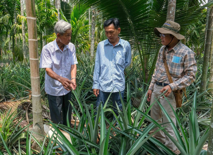 Do lúa bị nhiễm phèn, mặn, chính quyền địa phương đã hướng dẫn hộ ông Vưu Quốc Cường ở xã Bình An, huyện Châu Thành cải tạo ruộng, đào mương để trồng xen canh dứa, cau, dừa trên diện tích 3 ha. Đến nay, gia đình ông Cường có thu nhập khoảng 450 triệu đồng/năm, cao gấp 4 - 5 lần so với trồng lúa trước đây.