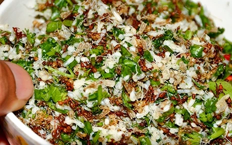 Điều làm nên sự độc đáo của món ăn này là nước chấm kèm theo làm nên hương vị rất riêng. Nước chấm được làm rất kỳ công gồm mẻ, tôm, gạo nếp.