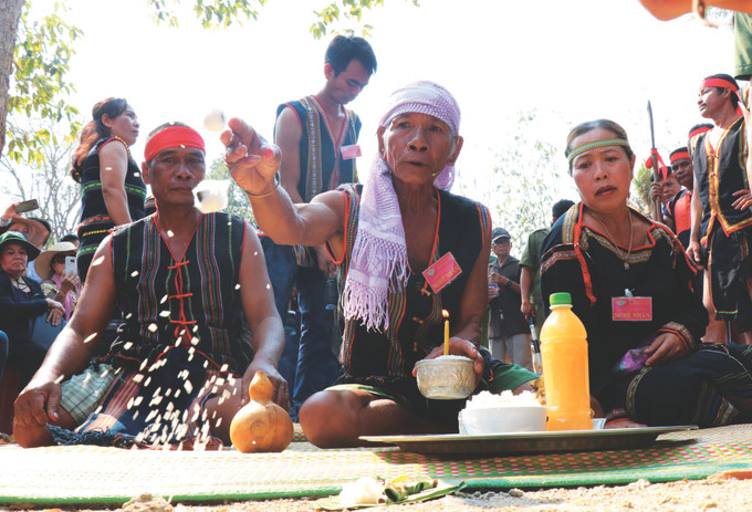 Tùy điều kiện kinh tế của buôn làng, cộng đồng người M’nông ở xã Krông Na, huyện Buôn Đôn (Đắk Lắk) hằng năm hoặc gián đoạn vài năm lại tổ chức Lễ cúng bến nước để cảm tạ thần linh, cầu cho mưa thuận gió hòa, mùa màng bội thu. Người M’nông quan niệm, cúng bến nước là để cầu cho nước trong, sạch, mang lại sức khỏe cho buôn làng. Ảnh: Tuấn Anh