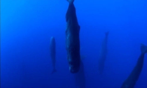 Khi ngủ, một nửa bán cầu não của cá nhà táng nghỉ ngơi trong khi nửa còn lại vẫn hoạt động để nhận biết kẻ thù và đồng loại. Cá nhà táng ngủ theo chiều thẳng đứng, một số cá thể để mũi ở trên mặt nước, trong khi nhiều con chúi hẳn đầu xuống biển. Ảnh: MNN.