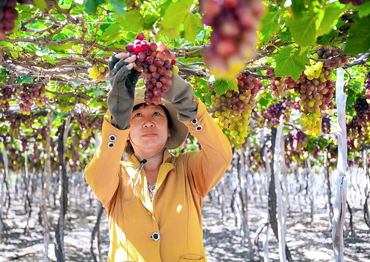 Mô hình trồng nho theo hướng an toàn sinh học của một hợp tác xã ở huyện Ninh Phước (Ninh Thuận). Ảnh: Công Thử
