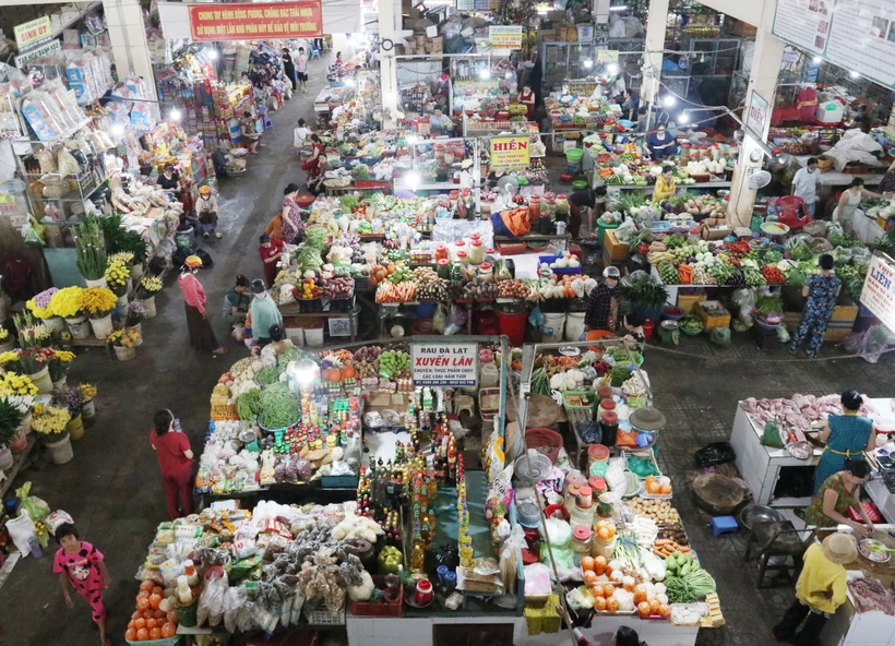 Các quầy hàng tại chợ Phan Rang (thành phố Phan Rang – Tháp Chàm, tỉnh Ninh Thuận). Ảnh: Nguyễn Thành – TTXVN