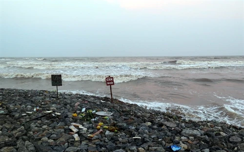 | Bãi biển khu vực Nhà thờ đổ, xã Hải Lý, nơi sóng biển cuốn trôi 3 học sinh tỉnh Nam Định vào chiều 8/5. Ảnh: Văn Đạt - TTXVN |