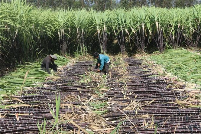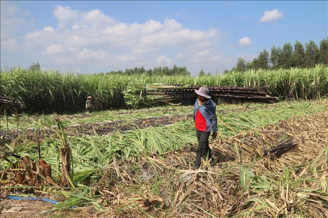 Thu hoạch mía tại vườn của gia đình anh Trần Đình Thành, ấp Bàu Hàm. Ảnh: Hoàng Nhị - TTXVN