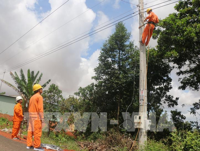 Đưa điện lưới về thôn 10, xã Bom Bo, huyện Bù Đăng. Ảnh: K GỬIH - TTXVN