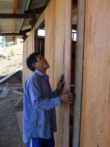 | Anh Hồ Văn Trang ở thôn 5, xã Trà Nam, huyện Nam Trà My di chuyển nhà từ vùng núi cao về vị trí mới có đường giao thông đi lại thuận lợi. |