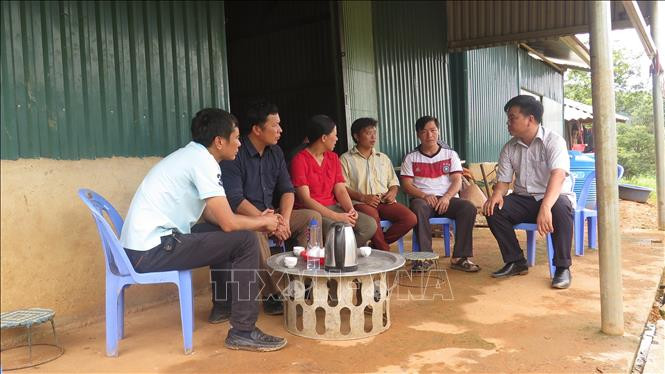 Cán bộ Phòng nông nghiệp huyện Sìn Hồ (Lai Châu) thăm các gia đình ở khu tái định cư bản Sáng Tùng, xã Tả Ngảo. Ảnh: Việt Hoàng-TTXVN