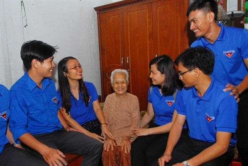 | Thành đoàn Thành phố Hồ Chí Minh và các tổ chức cơ sở đoàn thuộc Cụm Đoàn khối các Cơ quan Trung ương khu vực phía Nam tổ chức thăm hỏi người có công với Cách Mạng nhân Kỷ niệm Ngày Thương binh - Liệt sĩ 27/7 năm 2016. Ảnh: Mạnh Linh. |