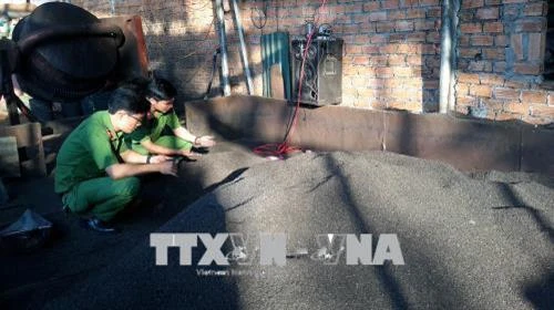 | Cà phê bẩn chế biến tại cơ sở của bà Nguyễn Thị Thanh Loan bị cơ quan chức năng tỉnh Đắk Nông bắt quả tang. Ảnh: TTXVN phát |