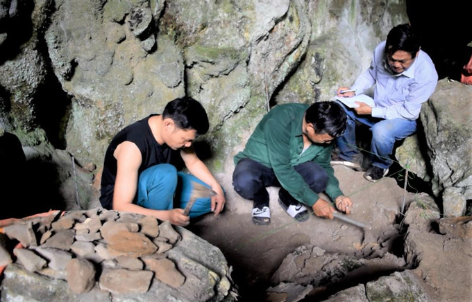 Đào khảo sát hang Thẳm Un 2. Ảnh: TTXVN phát