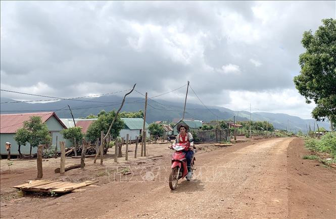 Nhiều tuyến đường ra vào “ốc đảo” PYầu được bê tông hóa, người dân đi lại thuận tiện. Ảnh: Quang Thái- TTXVN