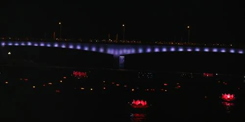 | Thả hoa đăng trên đầm Đông Hồ - Hà Tiên. Ảnh: Lê Huy Hải - TTXVN |