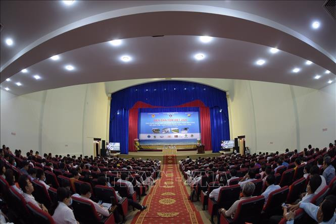 Quang cảnh Diễn đàn tôm Việt 2020 tại Bạc Liêu. Ảnh: Nhật Bình - TTXVN