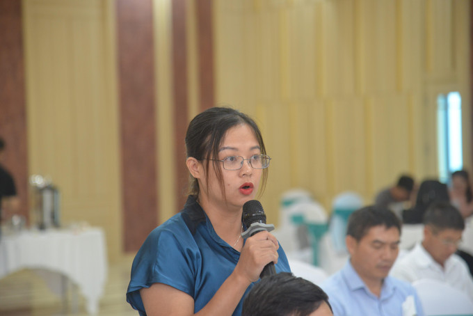 Đại biểu của Trung tâm Khuyến nông thành phố Sơn La nêu ý kiến tại Diễn đàn. Ảnh: Quang Quyết-TTXVN