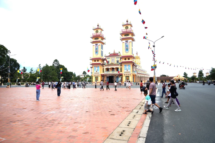 Nhiều du khách đến với Tòa thánh Cao đài Tây Ninh để tham quan và chiêm bái nhân dịp nghỉ Lễ Quốc khánh. Ảnh: Minh Phú - TTXVN