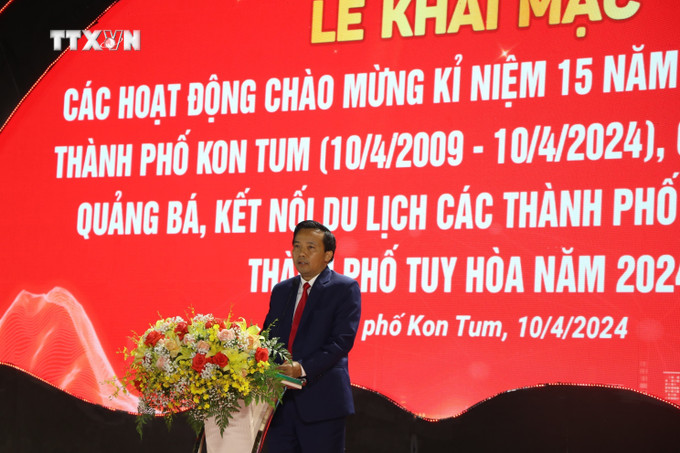Tối 10/4, tại Quảng trường 16/3, thành phố Kon Tum tổ chức Lễ khai mạc chuỗi các hoạt động chào mừng kỷ niệm 15 năm ngày thành lập thành phố (10/4/2009 - 10/4/2024) gắn với Ngày hội quảng bá du lịch thành phố Kon Tum và kết nối du lịch các thành phố ở Tây Nguyên, thành phố Tuy Hòa (tỉnh Phú Yên).