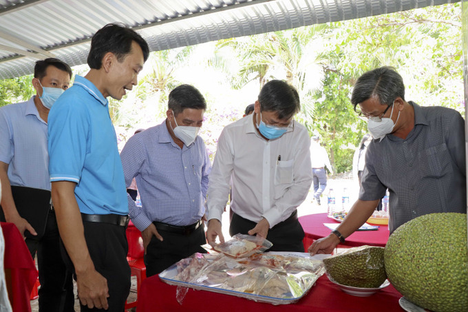 Lãnh đạo tỉnh Hậu Giang tham quan mô hình nông nghiệp tuần hoàn của Hợp tác xã Nông Gia tại ấp Hòa Bình, thị trấn Kinh Cùng, huyện Phụng Hiệp. Ảnh: Duy Khương - TTXVN