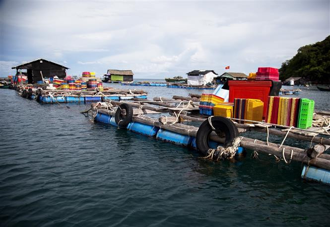 Mô hình nuôi cá lồng bè ở xã đảo Thổ Châu, thành phố Phú Quốc (Kiên Giang). Ảnh: Hồng Đạt - TTXVN