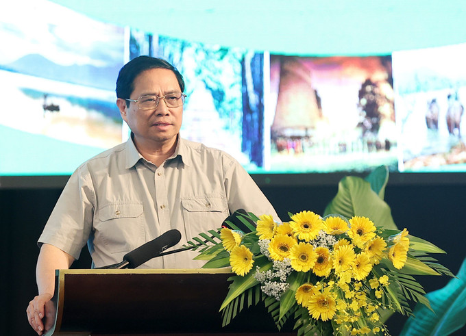 Thủ tướng Phạm Minh Chính phát biểu chỉ đạo hội nghị Hội nghị tổng kết thực hiện Nghị quyết của Bộ Chính trị về phát triển vùng Tây Nguyên. Ảnh: Dương Giang-TTXVN