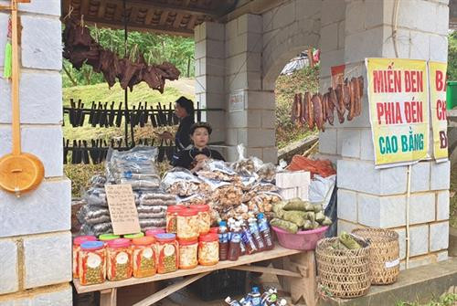 | Các sản vật dân tộc và món ăn truyền thống của đồng bào được giới thiệu tại phiên chợ. Ảnh: Hoàng Hải |