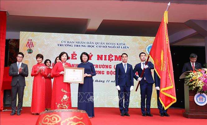 Tới dự buổi lễ có Phó Chủ tịch nước Đặng Thị Ngọc Thịnh, lãnh đạo UBND thành phố Hà Nội cùng các thế hệ nhà giáo, học sinh, các bậc phụ huynh của Trường Trung học cơ sở Ngô Sĩ Liên.