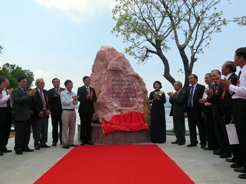 Phó Chủ tịch nước Đặng Thị Ngọc Thịnh dự Lễ kỷ niệm 40 năm xây dựng đại thủy nông Phú Ninh. Ảnh: Nguyễn Sơn- TTXVN