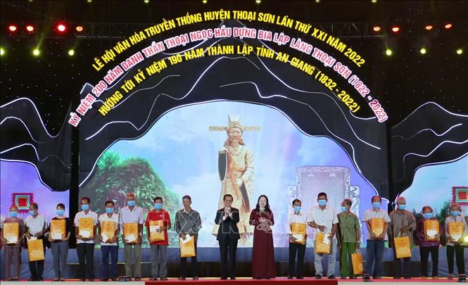 Tối 10/4, Phó Chủ tịch nước Võ Thị Ánh Xuân dự khai mạc Lễ hội Văn hóa truyền thống huyện Thoại Sơn lần thứ XXI năm 2022 tại Quảng trường Thoại Ngọc Hầu, huyện Thoại Sơn, tỉnh An Giang, nhân kỷ niệm 200 năm danh thần Thoại Ngọc Hầu dựng bia, lập làng Thoại Sơn (1822-2022).