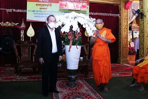 Nhân dịp này, Phó Thủ tướng Thường trực Chính phủ Trương Hòa Binh đã dâng hương và thực hiện nghi thức tắm Phật truyền thống của Phật giáo Nam tông trong dịp Tết cổ truyền Chôl Chnăm Thmây và gửi tặng 2 tấn gạo cho đồng bào Khmer tại khu vực Thành phố Hồ Chí Minh gặp khó khăn do dịch COVID-19.