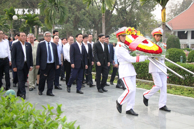 Chiều cùng ngày, Đoàn công tác của Chính phủ cũng đến đặt vòng hoa, dâng hương tại Nghĩa trang liệt sỹ A1, tưởng niệm các anh hùng liệt sĩ - những người con ưu tú của dân tộc đã anh dũng chiến đấu hy sinh vì sự nghiệp giải phóng dân tộc, giành độc lập, tự do cho Tổ quốc, vì chủ nghĩa xã hội, vì hạnh phúc của nhân dân...