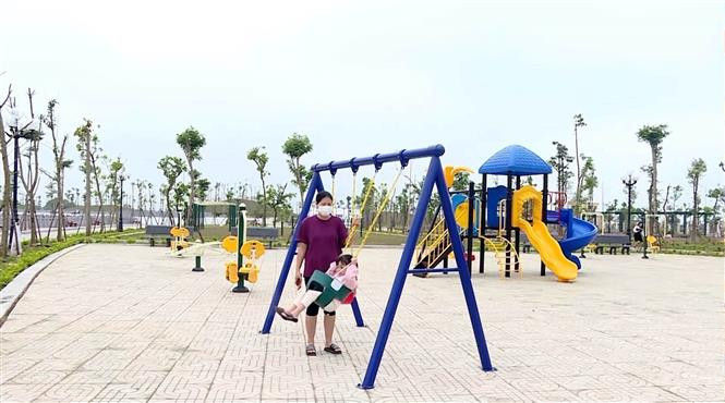 Công viên văn hóa cộng đồng có tổng nguồn vốn đầu tư trên 144 tỷ đồng, quy mô gần 8ha được xem là điểm nhấn, tạo không gian kiến trúc cảnh quan đặc trưng của đô thị huyện Kim Sơn, tỉnh Ninh Bình. Ảnh: Thùy Dung - TTXVN