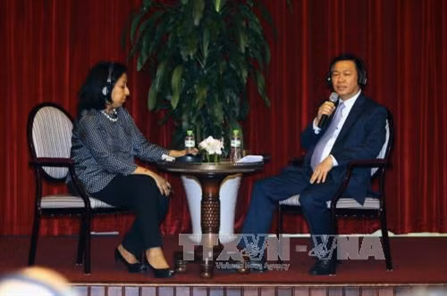 | Phó Thủ tướng Vương Đình Huệ giao lưu với lãnh đạo các tập đoàn đa quốc gia hàng đầu châu Á. Ảnh: Thanh Vũ - TTXVN |