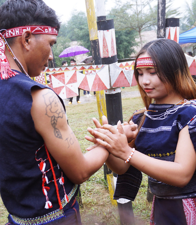 Nghi thức trao vòng cưới của cô dâu, chú rể người Bahnar. Ảnh: Hải Quỳnh