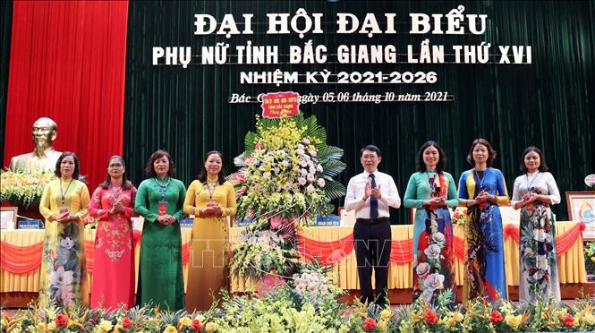Ra mắt Ban chấp hành Hội Liên hiệp Phụ nữ tỉnh Bắc Giang khóa XVI, nhiệm kỳ 2021-2026. Ảnh: Đồng Thúy-TTXVN