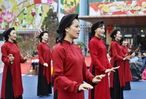 | Trình diễn hát Xoan - Di sản văn hoá phi vật thể của tỉnh Phú Thọ. Ảnh: Anh Tuấn - TTXVN |