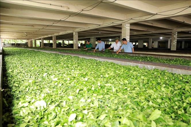 Dây chuyền chế biến chè của Công ty chè Phú Đa. Ảnh: Vũ Sinh - TTXVN