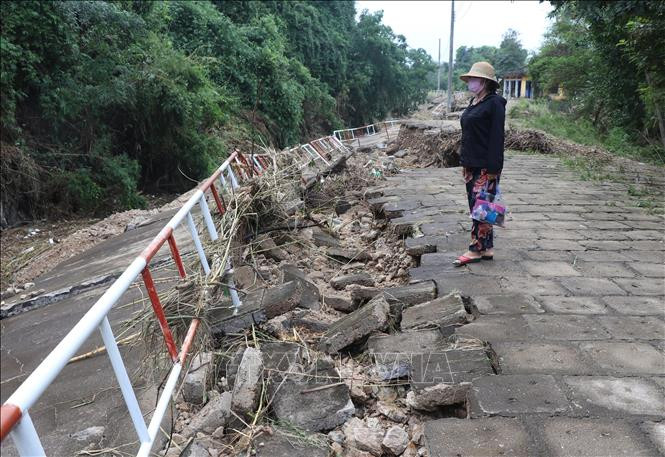 Nước lũ cuốn trôi hàng chục mét bờ kênh chính Nam qua thôn Tân Mỹ, xã Hòa Phú, huyện Tây Hòa Ảnh: Phạm Cường-TTXVN