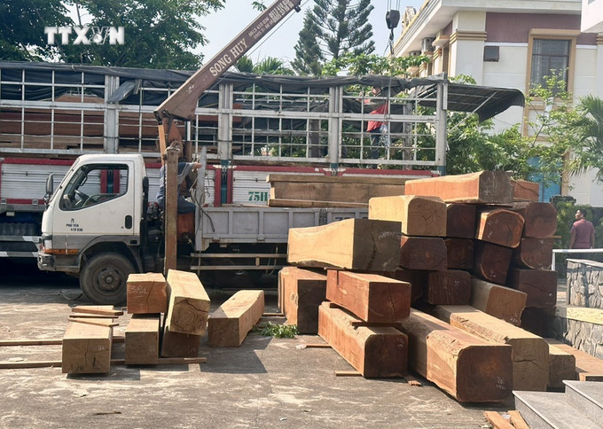Trước đó, ngày 9/4, Công an tỉnh Phú Yên đã tiến hành dừng kiểm tra xe ô tô tải mang biển kiểm soát 75H–001.xx, do ông N.T.H.V (sinh năm 1988, phường Thuận Lộc, thành phố Huế, tỉnh Thừa Thiên - Huế) điều khiển, lưu hành hướng Bắc – Nam. Tại thời điểm kiểm tra, ông N.T.H.V xuất trình 2 hóa đơn giá trị gia tăng và 2 bộ hồ sơ lâm sản liên quan đến nguồn gốc của số gỗ vận chuyển trên xe, tổng khối lượng gỗ là 26 m3. Các loại gỗ gồm: Căm xe, Cà chít và Bằng lăng, được xẻ ván và gỗ hộp.