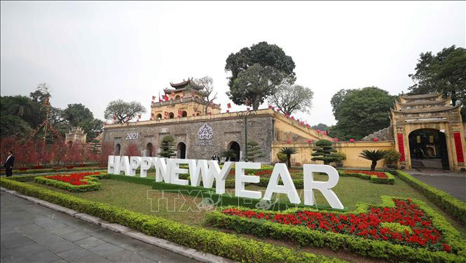 Đón Xuân mới Tân Sửu 2021, Hoàng Thành Thăng Long được trang trí rực rỡ. Ảnh: Thanh Tùng - TTXVN