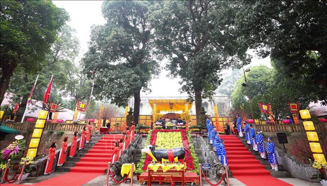 Ngày 4/2, tại Di sản Hoàng thành Thăng Long, Trung tâm Bảo tồn Di sản Thăng Long - Hà Nội đã phục dựng nghi lễ cung đình Thăng Long xưa thông qua hoạt động văn hóa mừng Tết Nguyên đán “Tân Sửu nghênh Xuân”.