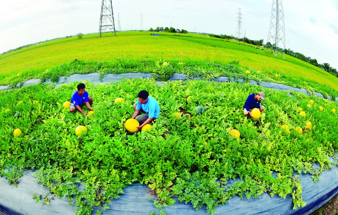 Thu hoạch dưa hấu ở xã Vĩnh Phú Đông, địa bàn có đông đồng bào dân tộc Khmer sinh sống thuộc huyện Phước Long (Bạc Liêu). Ảnh: Phan Thanh Cường