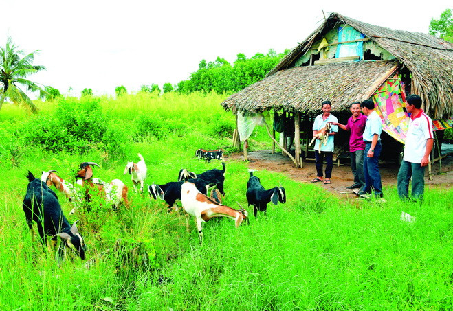 Mô hình nuôi dê tận dụng nguồn thức ăn từ những loại cây, cỏ có sẵn ở xã Phong Thạnh Tây, huyện Phước Long (Bạc Liêu) tạo việc làm, tăng thu nhập cho người dân. Ảnh: Phan Thanh Cường