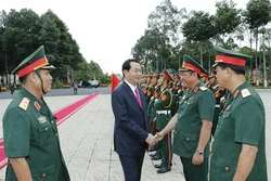 Nhân dịp đón Tết cổ truyền của dân tộc, sáng 21/01/2017, tại thành phố Cần Thơ, Chủ tịch nước Trần Đại Quang đến thăm, làm việc và chúc Tết cán bộ, chiến sĩ lực lượng vũ trang Quân khu 9.